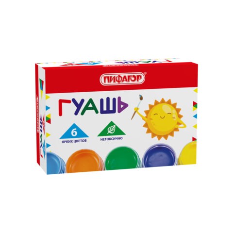 Гуашь ПИФАГОР "СОЛНЫШКО", 6 цветов по 25 мл, 192645