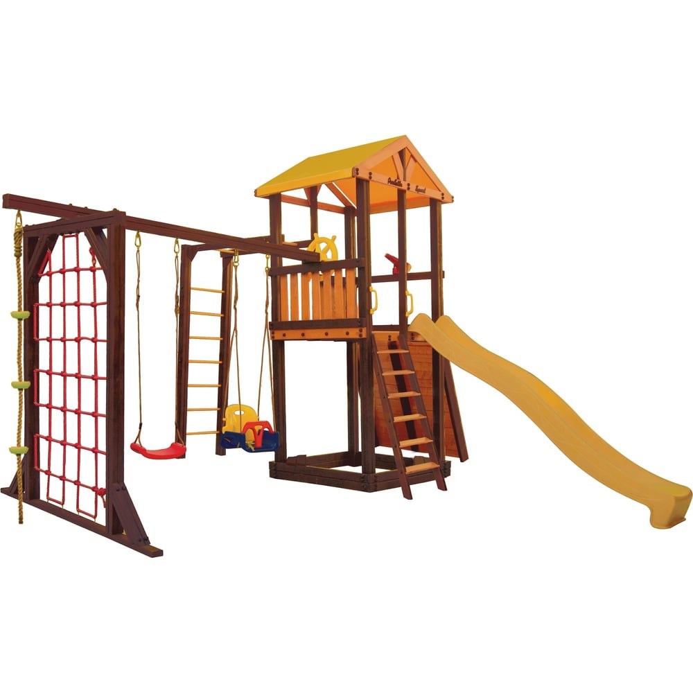 Игровой комплекс (ИК) Perfetto Sport «Pitigliano-14» СГ000004988 изготовлен из отборного пиломатериала хвойных пород из северных регионов. За счет этого древесина имеет более плотные годичные кольца, что обеспечивает долговечность и устойчивость к внешней агрессивной среде, позволяя добиться высокого качества готовых изделий. Благодаря специальной конструкции, клееный брус имеет прекрасные прочностные характеристики, не дает усадки и не деформируется. Закругление кромок по четырём сторонам деталей снижает вероятность растрескивания детали, появления сколов, трещин и самое главное, повышает уровень травмобезопасности. Детали изготовлены по принципу конструктора - выпускаются полностью подготовленными к сборке, за счет этого установка не требует высокой квалификации сборщика, достаточно шуруповерта и инструкции. Для защиты древесины используется специализированная водная дисперсия акриловых смол последнего поколения, способная растягиваться после сушки на 200% без разрыва плёнки. Имеет повышенную морозостойкость до -50°С, что актуально для российского климата. Содержит специальные фунгицидные добавки (противогрибковая защита), разрешенные к применению в России и странах ЕС. Дополнительные характеристики: Высота - 3.23 м Скат горки - 3 м Высота горки - 1.5 м