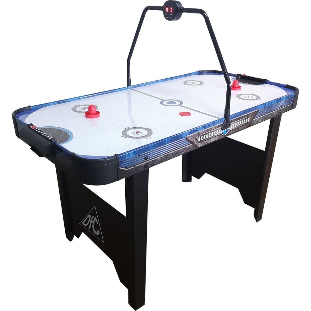 Игровой стол-аэрохоккей DFC MODO 54" JG-AT-131540 будет не только отличной покупкой для себя, но и прекрасным подарком. Оборудован электронным табло для подсчета забитых шайб на специальном держателе над столом. Дополнительно возле каждого игрока установлен механический счетчик. Корпус выполнен из специально обработанного МДФ, сверху покрытого прочным ПВХ ламинатом. Мощный компрессор подает воздух через отверстия по всей поверхности стола. Напряжение 230В. Стол комплектуется необходимым для игры набором аксессуаров: 2 биты и 2 шайбы красного цвета.