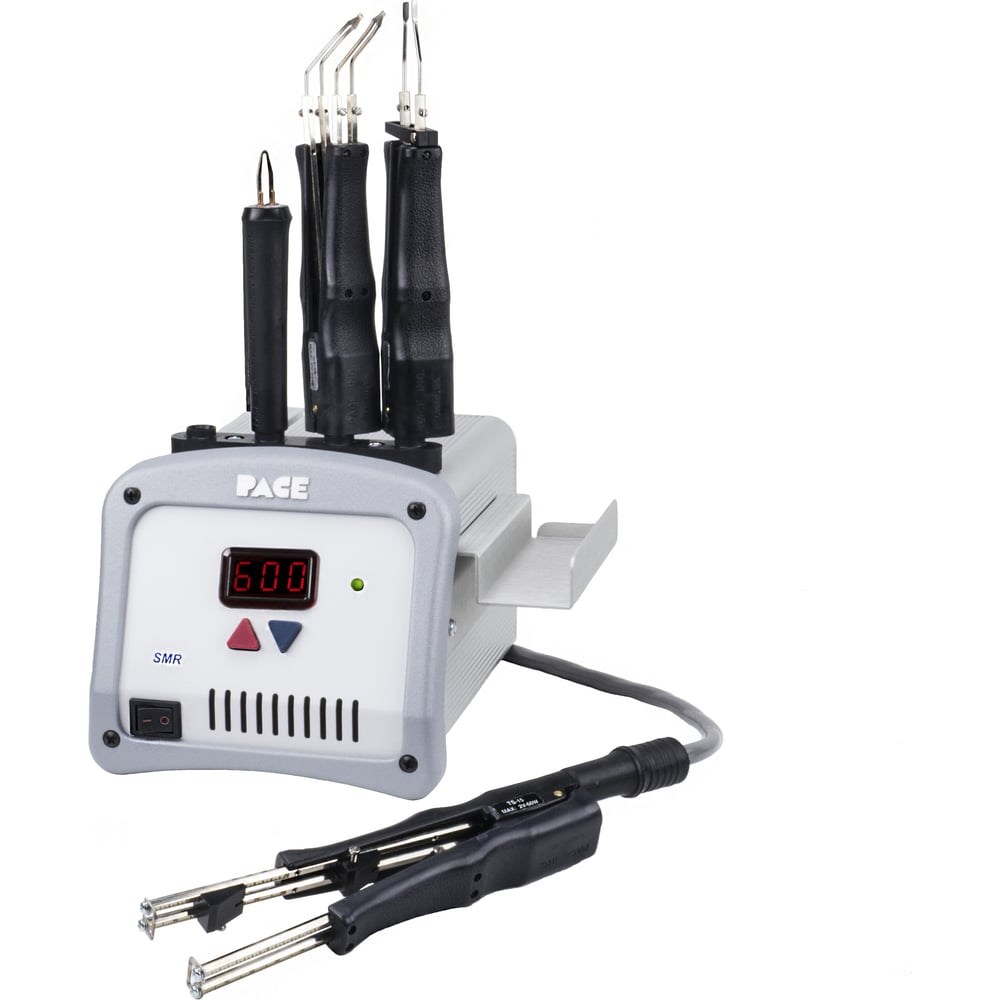 Импульсная паяльная станция PACE SMR в комплекте со съёмником изоляции TS15 8007-0566 имеет выходную мощность импульсной тепловой мощности, которая обеспечивает контролируемое нарастание температуры до температуры оплавления, снижая риск термического шока и нежелательный нагрев соседних паяных соединений. Система может быть использована для снятия и установки небольших SMD, термоизоляции проводов, пайки проводов к разъемам, ремонта внахлестку проводников и удаления покрытий. Предусмотрены блокировка паролем и антистатический, прочный металлический корпус.