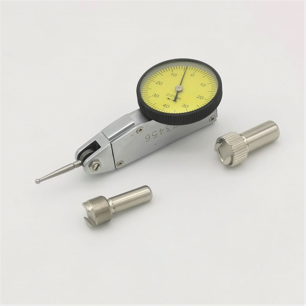 Индикатор рычажного типа с боковым циферблатом предназначен для измерения и контроля отклонения линейных размеров, контроля и измерения биения тел вращения. Диапазон измерения 0,8 мм. Цена деления шкалы 0,01 мм. Диаметр циферблата 32 мм. Поворотный рычаг и малые размеры индикатора позволяют использовать его в труднодоступных местах, в том числе и для внутренних размеров. На трех поверхностях корпуса индикатора расположены направляющие "ласточкин хвост" для установки держателя, что допускает различное положение индикатора относительно контролируемой поверхности. В комплекте поставляются два держателя диаметром 6 мм и 8 мм для закрепления в индикаторных стойках любого типа.