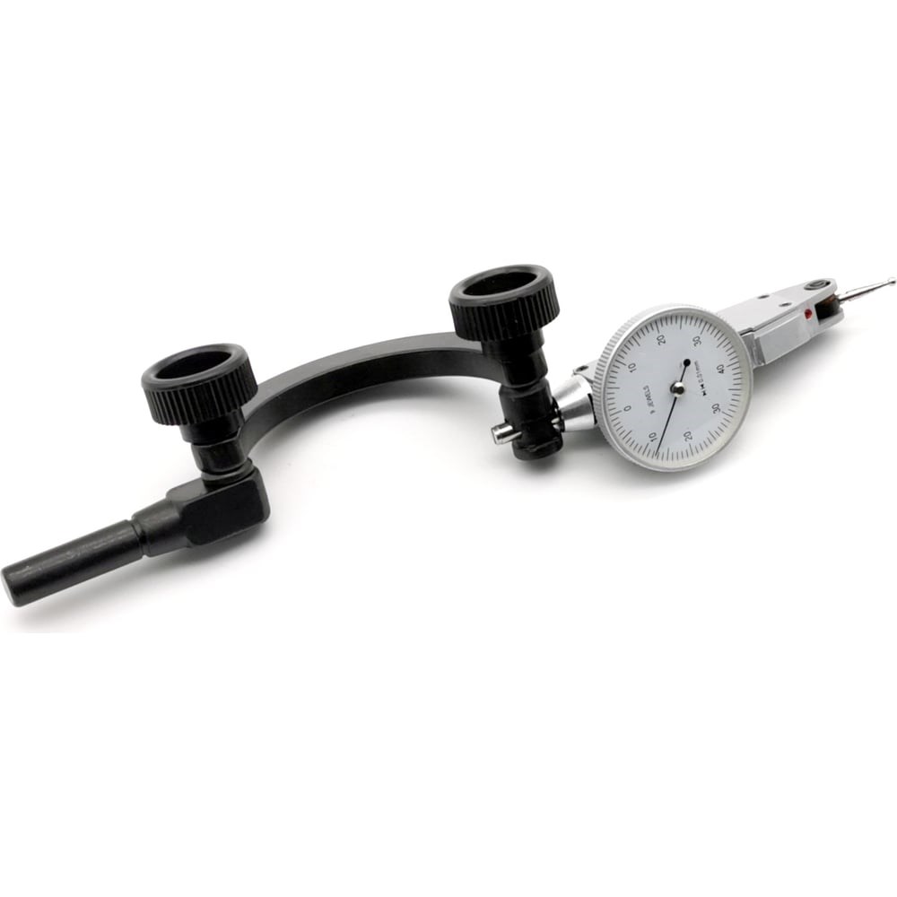 Индикатор рычажного типа ТЕХНОРЕАЛ 0-0,8 0,01 мм, с держателем МА600050508 применяется для измерения абсолютных и относительных линейных размеров, плоскостности и соосности. Также возможно применение индикатора в качестве центроискателя. При необходимости рычаг индикатора может быть в диапазоне наклона 180 градусов. Инструмент выполнен в ударопрочном корпусе и оснащен зубчатым приводом. имеет возможность крепления как за присоединительные стержни диаметром 6 и 8 мм, так и непосредственно за три направляющие типа «ласточкин хвост». Диаметр циферблата 32 мм.