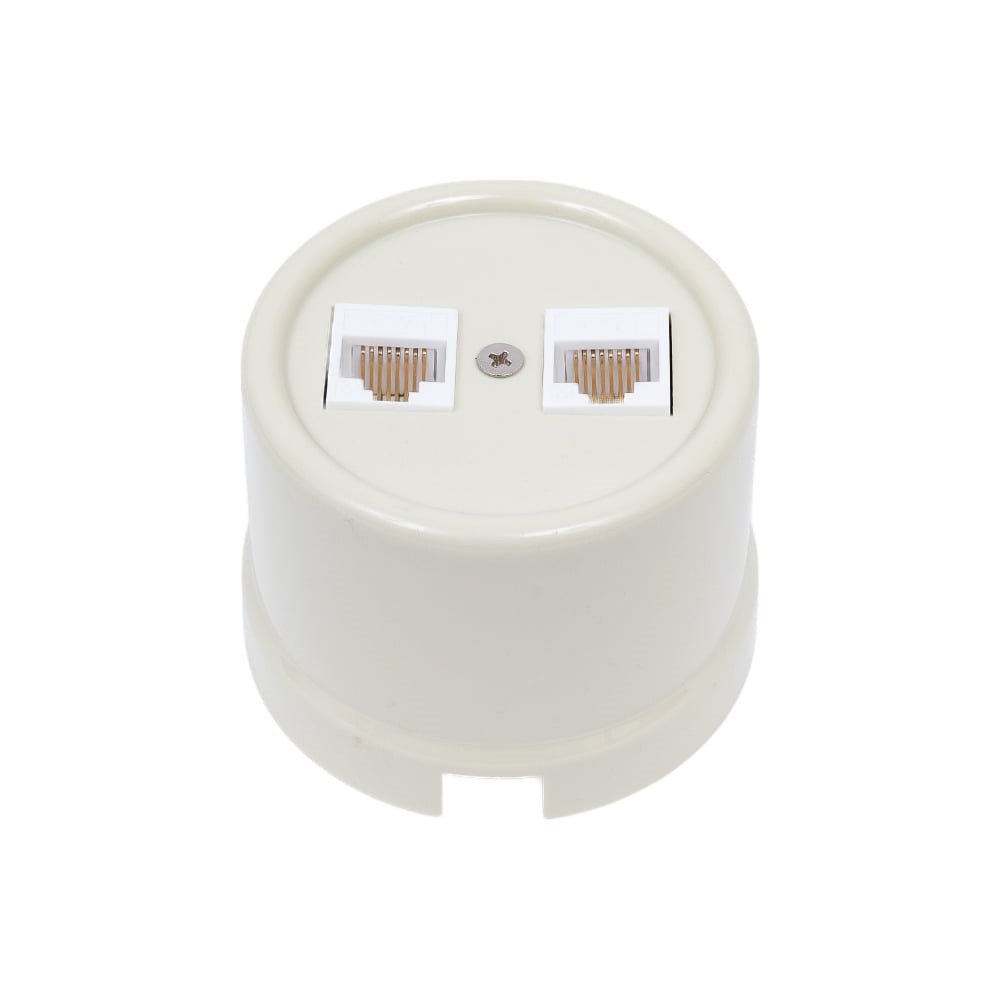 Розетка Bironi rj45 информационная двойная, пластик, цвет слоновая кость B1-302-211