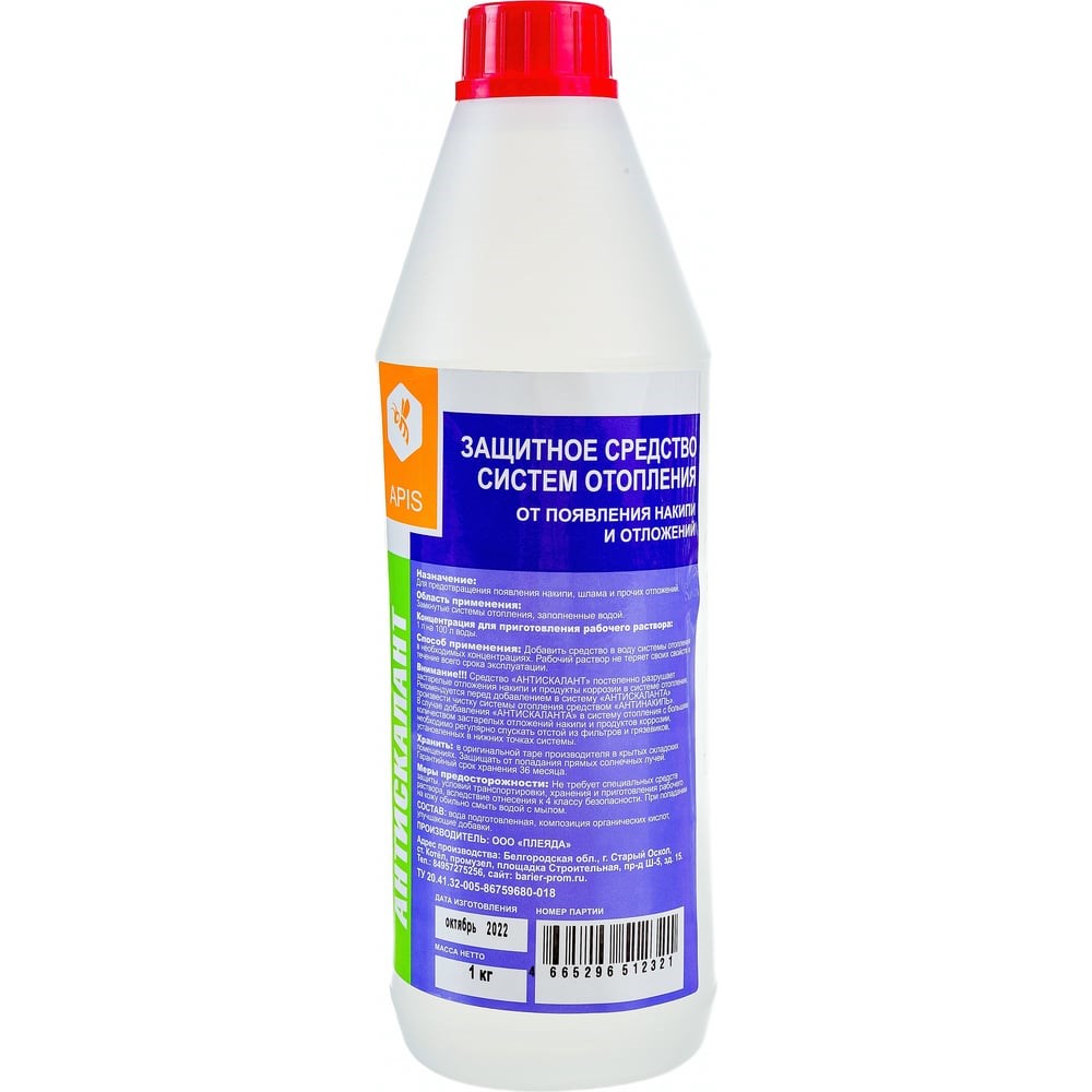 Ингибитор солеотложений APIS АНТИСКАЛАНТ бутылка 1 кг 4665296512321 предотвращает образование минеральных отложений в замкнутых системах отопления, заполненных водой. Увеличивает срок службы оборудования, поэтому отличается практичностью. Не разъедает резину и пластик, за счет чего безопасен в использовании. Ингибитор имеет экономичный расход, благодаря чему его хватит на долгое время.