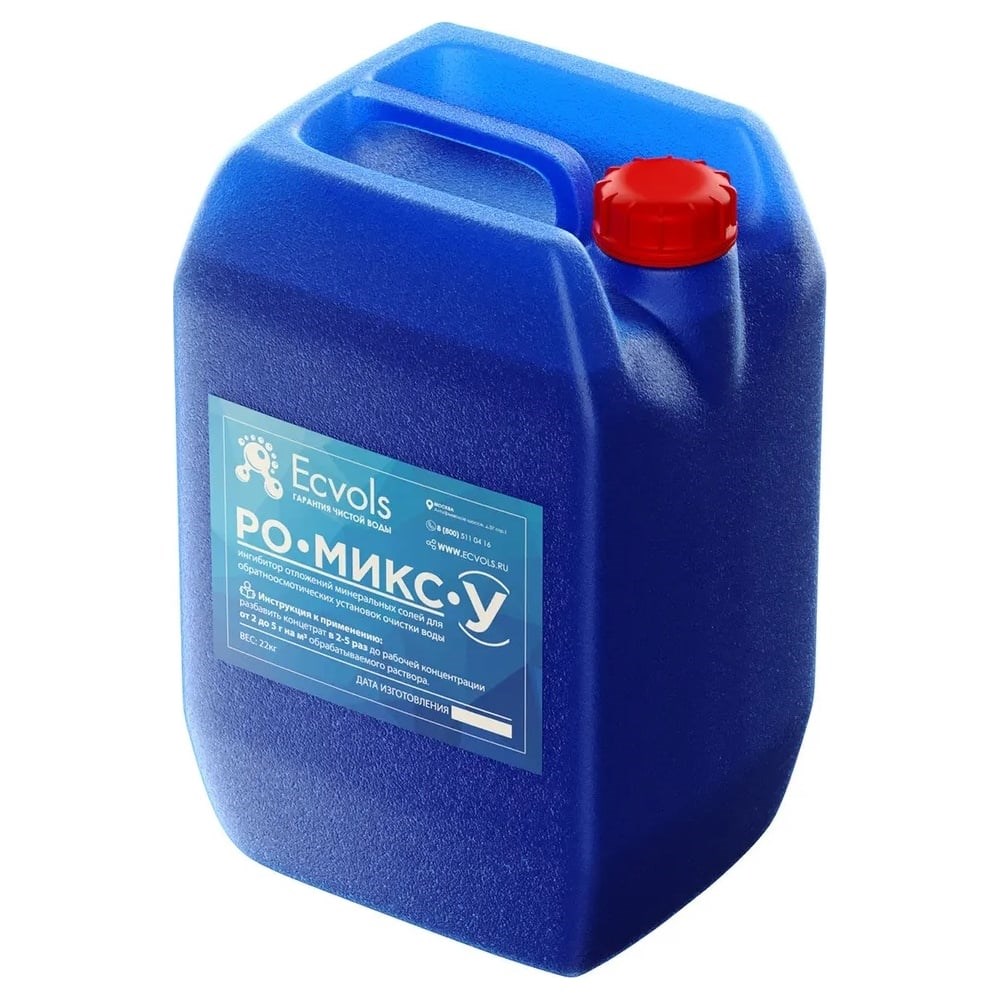 Ингибитор солеотложений обратного осмоса Ecvols РО-Микс-У, антискалант, 20 л,22 кг 00.00010926 - это универсальный антискалант, который разработан для предотвращения падения производительности мембран обратноосмотических установок и предотвращает отложение солей. Уникальная рецептура антискаланта РО-Микс-У позволяет одинаково эффективно защищать нано-поры мембран обратного осмоса от закупоривания как ионами солей жесткости (кальция и магния), железа, марганца, так и блокирует биообрастание бактериальной слизью. Химический состав ингибитора солеотложений не проникает через мембрану обратного осмоса, образуя комплексы и комплексоны с вредоносными ионами и увлекает из в дренаж. Удобная фасовка 20 л или 22 кг. Концентрат! Требует разбавления до рабочих концентраций согласно рекомендациям: разбавить концентрат в 2-5 раз до рабочей концентрации от 2 до 5 м3 обрабатываемого раствора. Является улучшенным аналогом ингибитора Аминат-К, Genesys LF. Продлевает срок службы оборудования, благодаря чему отличается практичностью.Не повреждает материалы, за счет чего безопасен в использовании.Ингибитор имеет экономичный расход, поэтому его хватает на долгое время.