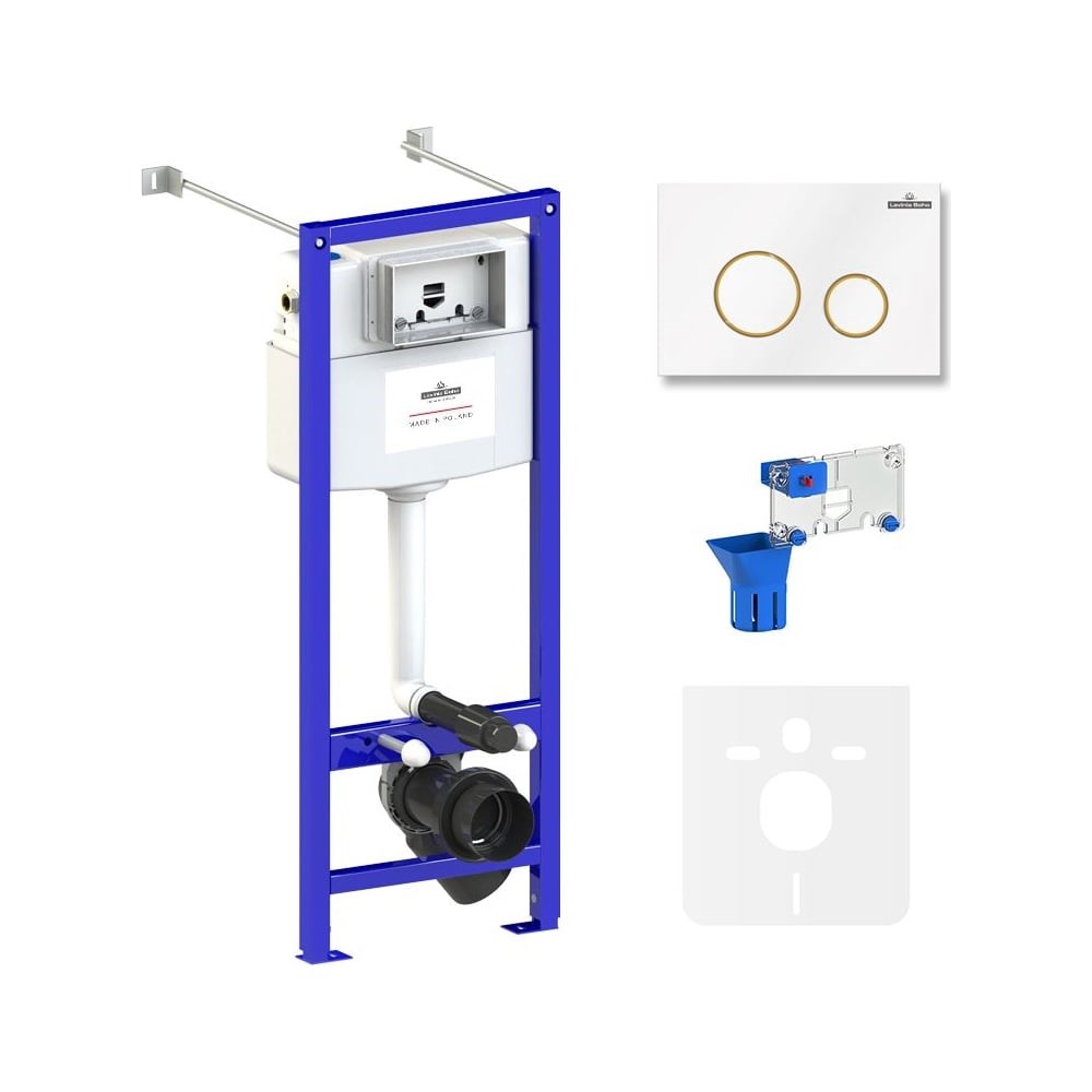 Готовое решение Lavinia Boho по специальной цене для монтажа любых подвесных унитазов. Универсальная инсталляция Единое инсталляционное решение для монтажа в любую типовую сантехническую шахту вне зависимости от расположения стояков, водопроводных труб и других инженерных коммуникаций. Инсталляционная система Lavinia Boho Relfix оснащена универсальным комплектом креплений, что позволяет производить не только стандартный «прямой» монтаж рамы к стене, но и в случае неровности стен осуществлять «поворотный» монтаж, вплоть до установки инсталляции в угол помещения. Бачок скрытого монтажа с латунными элементами Бачок скрытого монтажа, корпус которого изготовлен из долговечного полимерного материала HDPE, является цельнолитым (бесшовным). Наливной и сливной механизмы сертифицированы как I класс по французскому стандарту NF, обеспечивают бесперебойную работу смыва и самый низкий уровень шума в своем классе - 8.5 Db. Все пластмассовые компоненты бачка изготавливаются посредством литья под давлением и прессом, что позволяет получать сложные, функциональные и долговечные элементы. Все соединительные элементы для подключения инсталляционной системы к трубопроводу изготовлены из латуни. Звукоизоляционная панель Звукоизоляционная пластина для подвесной керамики Lavinia Boho RelFix позволит существенно снизить шум воды, сливаемой из бачка инсталляционной системы. Дополнительно, пластина станет амортизирующей прослойкой между керамикой и плиткой, защищая поверхности от повреждения. Шумоизоляция оснащена необходимыми универсальными монтажными отверстиями для легкой установки любой подвесной керамики. Ультратонкая клавиша смыва Ультратонкий монтаж клавиши смыва обеспечивает высокую эстетику, а также облегчает поддержание чистоты в туалете. Панель смыва минимально выступает за поверхность кафеля и относится к одним из самых тонких решений на рынке. Надежный механизм активации смыва рассчитан на 200.000 циклов (или 15 лет бесперебойной работы). Панель смыва Lavinia Boho RelFix впечатляет не только стильным дизайном, но и интегрированным антибактериальным покрытием SanitiZed, благодаря которому ограничивается рост и размножение бактерий на 99%. Ионы серебра не теряют свою активность даже после многих лет использования. Устойчивое покрытие панели смыва не смывается и не стирается со временем. Наивысшая эффективность в отрасли среди технологий используемых в сливных клавишах. Диспенсер для повышенной гигиены Диспенсер для освежающих и дезинфицирующих средств позволит обеспечить высокую гигиену унитаза и приятный аромат свежести в туалетной комнате. Дозатор предназначен для установки в сливной бачок инсталляционной системы и состоит из трех элементов: корзины, устанавливаемой в сливном бачке, емкости, в которую необходимо поместить туалетный блок и элемента, маскирующего плитку. Благодаря точной подгонке резервуара под туалетные блоки, при каждом смыве в бачок с водой поступает одинаковое количество дезинфицирующего средства, равномерно распределяемого по чаше унитаза. Идеальный результат смыва достигается за счет уникальной конструкции диспенсера, исключающего прилипание туалетных блоков к его элементам. Для пополнения резервуара туалетными блоками нет необходимости прикасаться к негигиеничным областям, таким как чаша или край унитаза. До