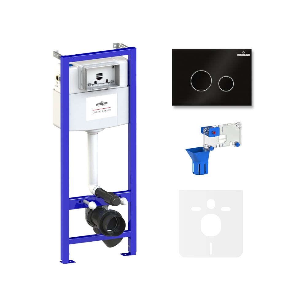 Готовое решение Lavinia Boho по специальной цене для монтажа любых подвесных унитазов. Универсальная инсталляция Единое инсталляционное решение для монтажа в любую типовую сантехническую шахту вне зависимости от расположения стояков, водопроводных труб и других инженерных коммуникаций. Инсталляционная система Lavinia Boho Relfix оснащена универсальным комплектом креплений, что позволяет производить не только стандартный «прямой» монтаж рамы к стене, но и в случае неровности стен осуществлять «поворотный» монтаж, вплоть до установки инсталляции в угол помещения. Бачок скрытого монтажа с латунными элементами Бачок скрытого монтажа, корпус которого изготовлен из долговечного полимерного материала HDPE, является цельнолитым (бесшовным). Наливной и сливной механизмы сертифицированы как I класс по французскому стандарту NF, обеспечивают бесперебойную работу смыва и самый низкий уровень шума в своем классе - 8.5 Db. Все пластмассовые компоненты бачка изготавливаются посредством литья под давлением и прессом, что позволяет получать сложные, функциональные и долговечные элементы. Все соединительные элементы для подключения инсталляционной системы к трубопроводу изготовлены из латуни. Звукоизоляционная панель Звукоизоляционная пластина для подвесной керамики Lavinia Boho RelFix позволит существенно снизить шум воды, сливаемой из бачка инсталляционной системы. Дополнительно, пластина станет амортизирующей прослойкой между керамикой и плиткой, защищая поверхности от повреждения. Шумоизоляция оснащена необходимыми универсальными монтажными отверстиями для легкой установки любой подвесной керамики. Ультратонкая клавиша смыва Ультратонкий монтаж клавиши смыва обеспечивает высокую эстетику, а также облегчает поддержание чистоты в туалете. Панель смыва минимально выступает за поверхность кафеля и относится к одним из самых тонких решений на рынке. Надежный механизм активации смыва рассчитан на 200.000 циклов (или 15 лет бесперебойной работы). Панель смыва Lavinia Boho RelFix впечатляет не только стильным дизайном, но и интегрированным антибактериальным покрытием SanitiZed, благодаря которому ограничивается рост и размножение бактерий на 99%. Ионы серебра не теряют свою активность даже после многих лет использования. Устойчивое покрытие панели смыва не смывается и не стирается со временем. Наивысшая эффективность в отрасли среди технологий используемых в сливных клавишах. Диспенсер для повышенной гигиены Диспенсер для освежающих и дезинфицирующих средств позволит обеспечить высокую гигиену унитаза и приятный аромат свежести в туалетной комнате. Дозатор предназначен для установки в сливной бачок инсталляционной системы и состоит из трех элементов: корзины, устанавливаемой в сливном бачке, емкости, в которую необходимо поместить туалетный блок и элемента, маскирующего плитку. Благодаря точной подгонке резервуара под туалетные блоки, при каждом смыве в бачок с водой поступает одинаковое количество дезинфицирующего средства, равномерно распределяемого по чаше унитаза. Идеальный результат смыва достигается за счет уникальной конструкции диспенсера, исключающего прилипание туалетных блоков к его элементам. Для пополнения резервуара туалетными блоками нет необходимости прикасаться к негигиеничным областям, таким как чаша или край унитаза. До