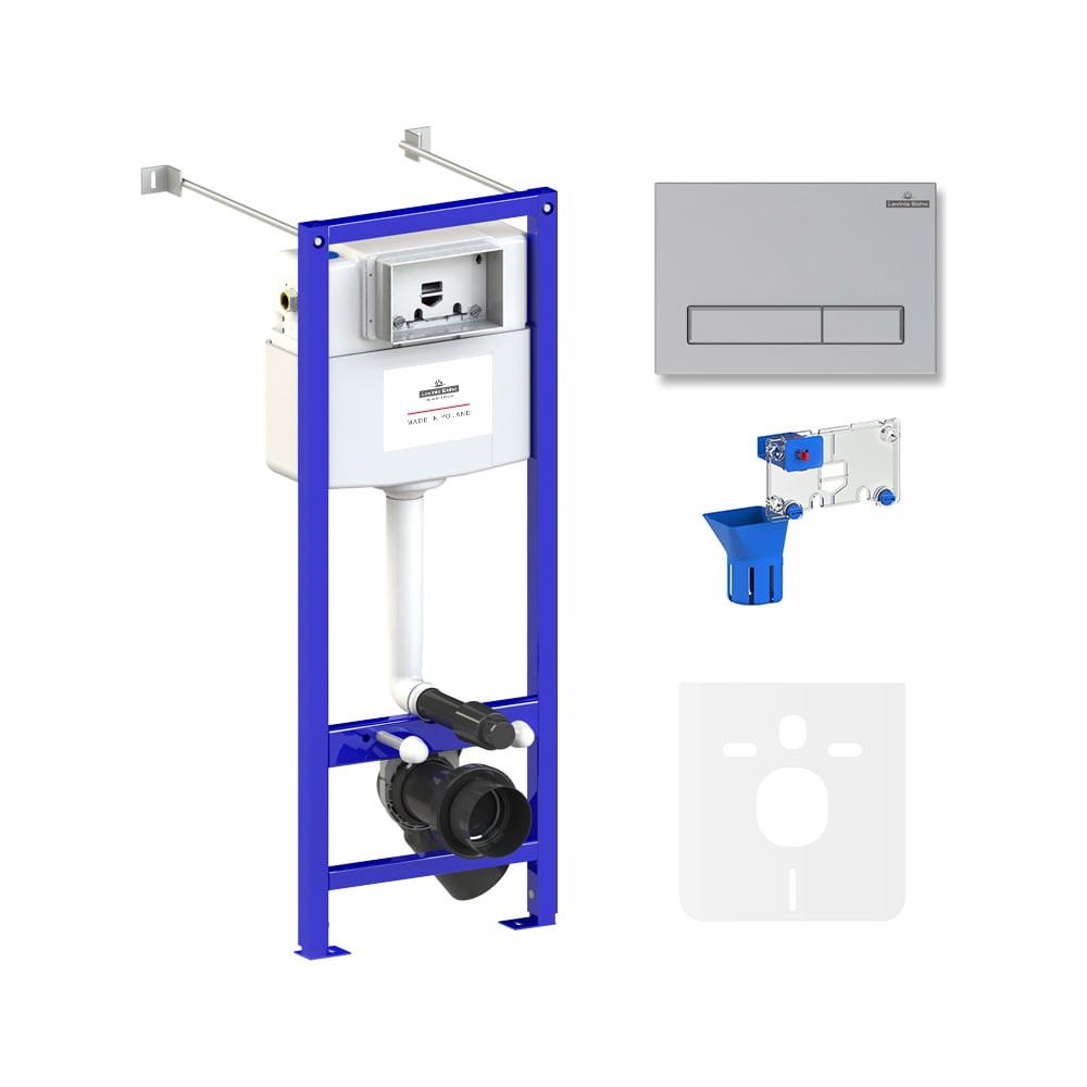 Готовое решение Lavinia Boho по специальной цене для монтажа любых подвесных унитазов. Универсальная инсталляция Единое инсталляционное решение для монтажа в любую типовую сантехническую шахту вне зависимости от расположения стояков, водопроводных труб и других инженерных коммуникаций. Инсталляционная система Lavinia Boho Relfix оснащена универсальным комплектом креплений, что позволяет производить не только стандартный «прямой» монтаж рамы к стене, но и в случае неровности стен осуществлять «поворотный» монтаж, вплоть до установки инсталляции в угол помещения. Бачок скрытого монтажа с латунными элементами Бачок скрытого монтажа, корпус которого изготовлен из долговечного полимерного материала HDPE, является цельнолитым (бесшовным). Наливной и сливной механизмы сертифицированы как I класс по французскому стандарту NF, обеспечивают бесперебойную работу смыва и самый низкий уровень шума в своем классе - 8.5 Db. Все пластмассовые компоненты бачка изготавливаются посредством литья под давлением и прессом, что позволяет получать сложные, функциональные и долговечные элементы. Все соединительные элементы для подключения инсталляционной системы к трубопроводу изготовлены из латуни. Звукоизоляционная панель Звукоизоляционная пластина для подвесной керамики Lavinia Boho RelFix позволит существенно снизить шум воды, сливаемой из бачка инсталляционной системы. Дополнительно, пластина станет амортизирующей прослойкой между керамикой и плиткой, защищая поверхности от повреждения. Шумоизоляция оснащена необходимыми универсальными монтажными отверстиями для легкой установки любой подвесной керамики. Ультратонкая клавиша смыва Ультратонкий монтаж клавиши смыва обеспечивает высокую эстетику, а также облегчает поддержание чистоты в туалете. Панель смыва минимально выступает за поверхность кафеля и относится к одним из самых тонких решений на рынке. Надежный механизм активации смыва рассчитан на 200.000 циклов (или 15 лет бесперебойной работы). Панель смыва Lavinia Boho RelFix впечатляет не только стильным дизайном, но и интегрированным антибактериальным покрытием SanitiZed, благодаря которому ограничивается рост и размножение бактерий на 99%. Ионы серебра не теряют свою активность даже после многих лет использования. Устойчивое покрытие панели смыва не смывается и не стирается со временем. Наивысшая эффективность в отрасли среди технологий используемых в сливных клавишах. Диспенсер для повышенной гигиены Диспенсер для освежающих и дезинфицирующих средств позволит обеспечить высокую гигиену унитаза и приятный аромат свежести в туалетной комнате. Дозатор предназначен для установки в сливной бачок инсталляционной системы и состоит из трех элементов: корзины, устанавливаемой в сливном бачке, емкости, в которую необходимо поместить туалетный блок и элемента, маскирующего плитку. Благодаря точной подгонке резервуара под туалетные блоки, при каждом смыве в бачок с водой поступает одинаковое количество дезинфицирующего средства, равномерно распределяемого по чаше унитаза. Идеальный результат смыва достигается за счет уникальной конструкции диспенсера, исключающего прилипание туалетных блоков к его элементам. Для пополнения резервуара туалетными блоками нет необходимости прикасаться к негигиеничным областям, таким как чаша или край унитаза. До
