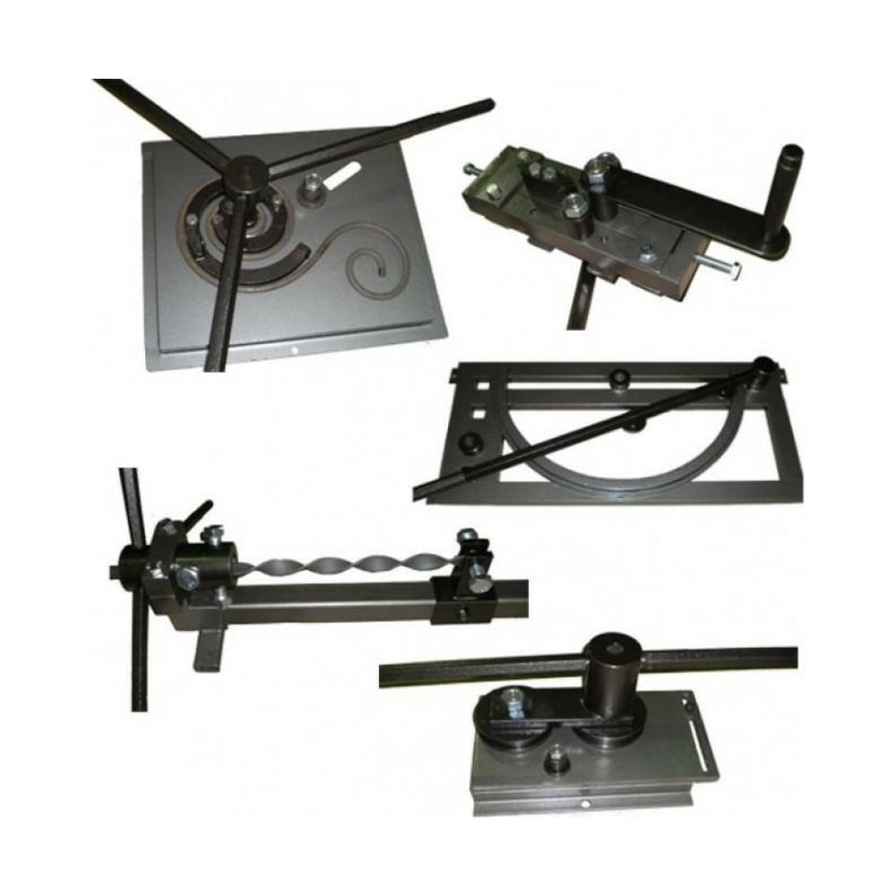 Инструмент AURA TOOLS Золотая пятерка 6500027 представляет собой комплект станков для холодной ковки. Кузнечный станок "Улитка" позволяет изготавливать все возможные формы завитка: волюта, завиток, калач. Инструмент состоит из трех секций, которые можно менять местами для изготовления элементов с разными радиусами. Можно работать с профилями с квадратным сечением 10 и 12 мм, с прутком 6 и 8 мм, с полосами - максимальный размер 30х5 мм. Кузнечный станок "Твистер" предназначен для продольного скручивания металлических полос (30х4 мм), профилей с квадратным сечением (14 мм), нескольких прутков и проволоки до 6 мм по 3 шт. Кузнечный станок "Гнутик" используют для изготовления геометрических фигур, колец, дуг и гибки углов. С помощью инструмента легко и просто делать квадрат, треугольник, любой многогранник, различные фигуры ("волна", "змейка"), сочетающие в себе прямые и изогнутые линии. На нем можно устанавливать заклепки и работать с профилем с квадратным сечением, прутком 6 и 8, 10, 12 мм, полосой - 30х4 мм. Кузнечный станок "Объемник" предназначен для сгибания по дуге, изготовления объемных элементов при производстве балконов, оконных решеток из металлического квадрата, прутка и полосы. Кузнечный ручной станок "Волна" необходим для сгибания синусоиды, изготовления элементов при производстве монастырской вязи.
