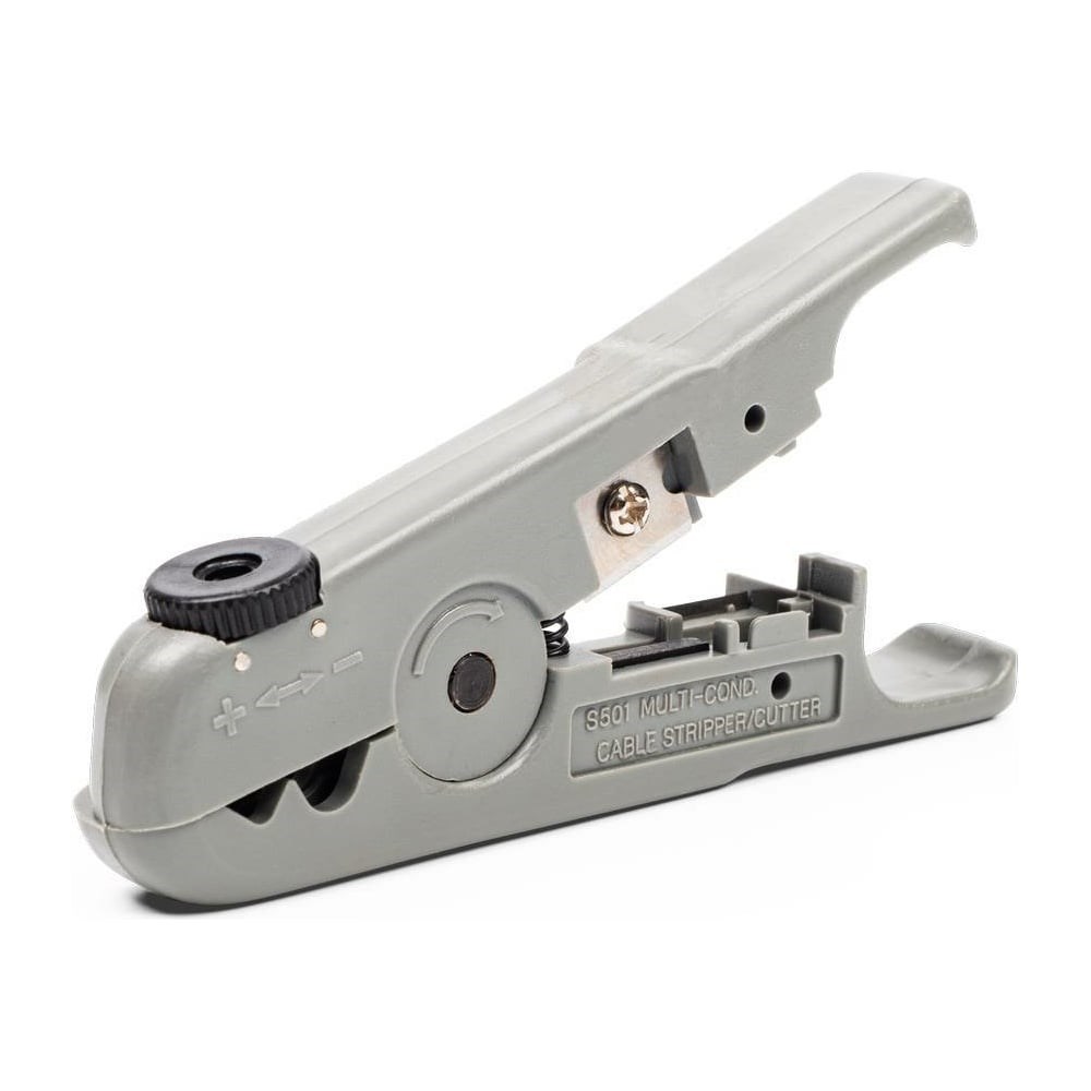 Инструмент для зачистки и обрезки витой пары КВТ КС-501 84826 - удобный ручной стриппер: Снятие изоляции с плоских телефонных проводов Снятие оболочки с круглых проводов типа UTP, STP Регулятор глубины зачистки провода Резка проводов Возвратная пружина Ударопрочный пластик