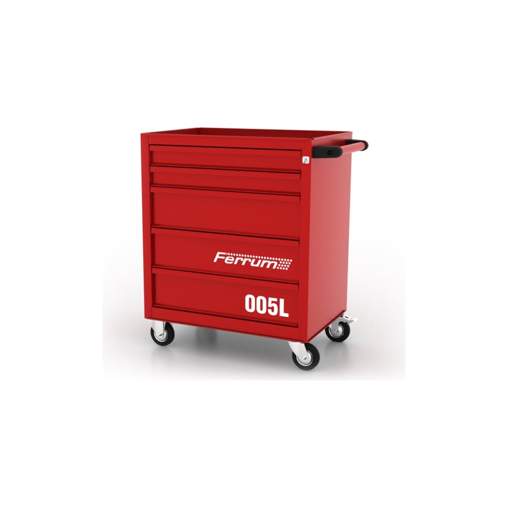 Инструментальная тележка FERRUM с 5 ящиками 02.005L-3000 предназначена для хранения и транспортировки различных инструментов, крепежа и аксессуаров.Ящик 565х417х45 h мм - 2 штЯщик 565х417х125 h мм - 3 штТип направляющих - телескопические, развернутый подшипникТип крепления- зацепВыдвижение ящика - 92 %Замок - центральный с блокировкой всех ящиковКоличество ключей - 2 штДиаметр колес - 100 ммКомплект колес - 2 неповоротных, 1 поворотное, 1 поворотное со стопоромПокрытие колеса - бензомаслостойкая резинаПокрытие рабочей поверхности тележки- бензомаслостойкий коврик толщиной 4 ммВозможность крепления аксессуаров на боковых стенках тележкиТип покрытия - порошковое эпоксидно-полиэфирное