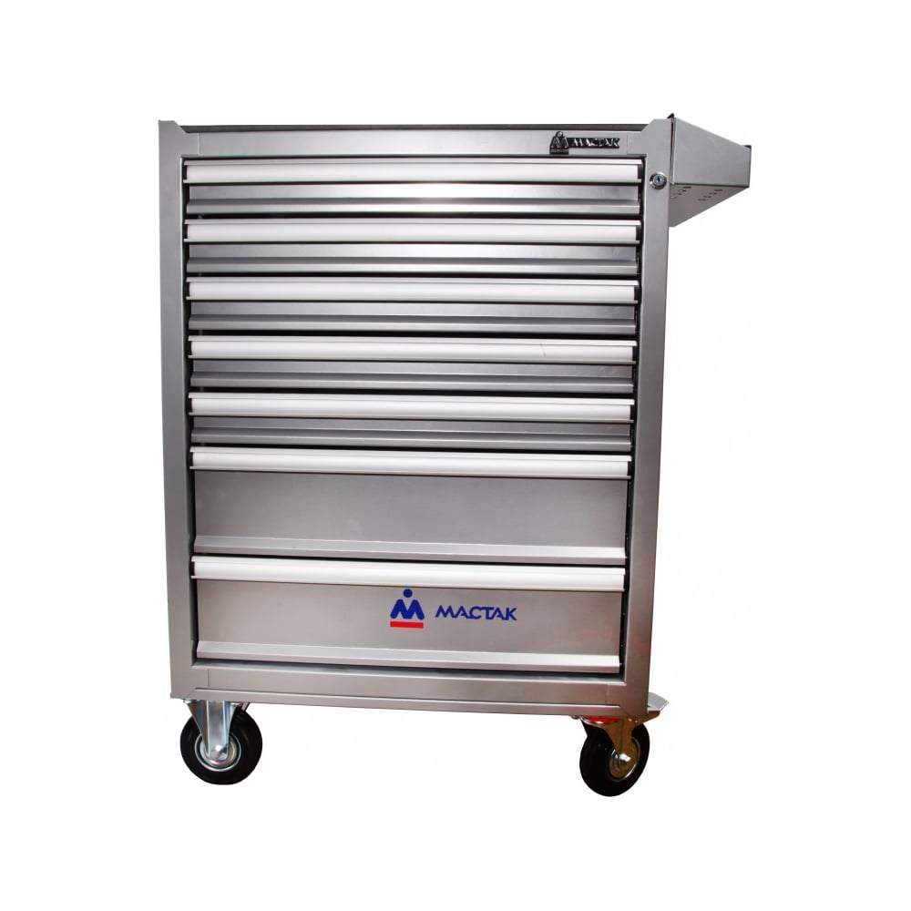 Инструментальная тележка МАСТАК ОПТИМА 7 полок, серая 521-07581MG служит для организации рабочего места механика или автослесаря. При помощи боковой ручки и поворотных колес пользователь с легкостью задает направление движения тележки. Для долгого срока службы материалом корпуса изделия служит листовая сталь. На двух роликовых колесах предусматривается стопор, который дает возможность фиксировать модель в статичном положении.