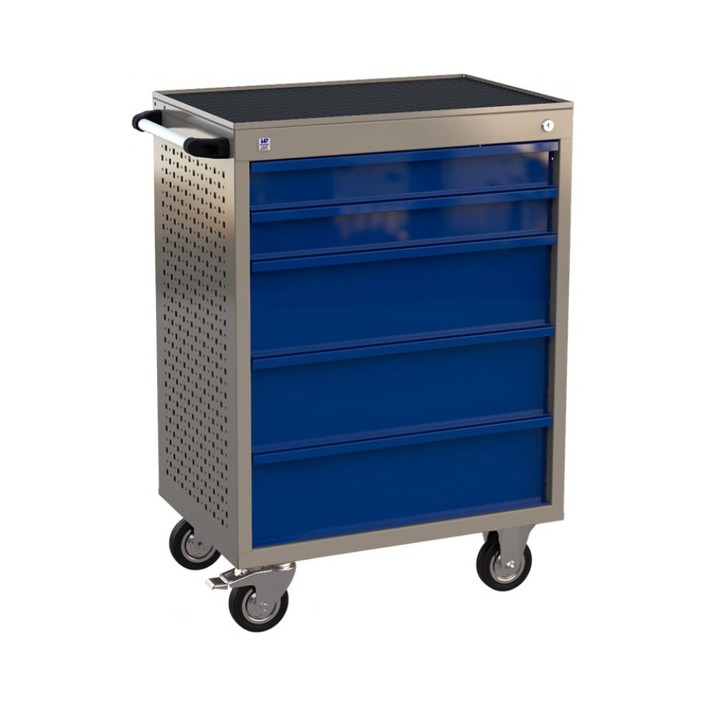 Инструментальная тележка Wellmet ML5C удобна для работы в мастерских и автосервисах за счет наличия колес. Большое количество ящиков облегчает распределение и поиск инструмента. Модель оснащена тормозом для возможности застопорить тележку даже на наклонной поверхности. За счет окрашивания порошковой краской металл лишен контакта с воздухом. Ширина и глубина ящиков (рабочая): 520х375 мм. Глубина ящиков: Ящик выкатной 76/65* - 2 шт Ящик выкатной 155/144* - 3 шт