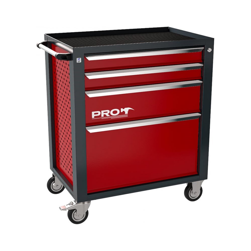 Инструментальная тележка Wellmet ТЗИ-4 Pro удобна для работы в мастерских и автосервисах за счет наличия колес. Большое количество ящиков облегчает распределение и поиск инструмента.Яркое окрашивание делает тележку заметной. Использование порошковой краски защищает от коррозии. Наличие тормоза облегчает управление.