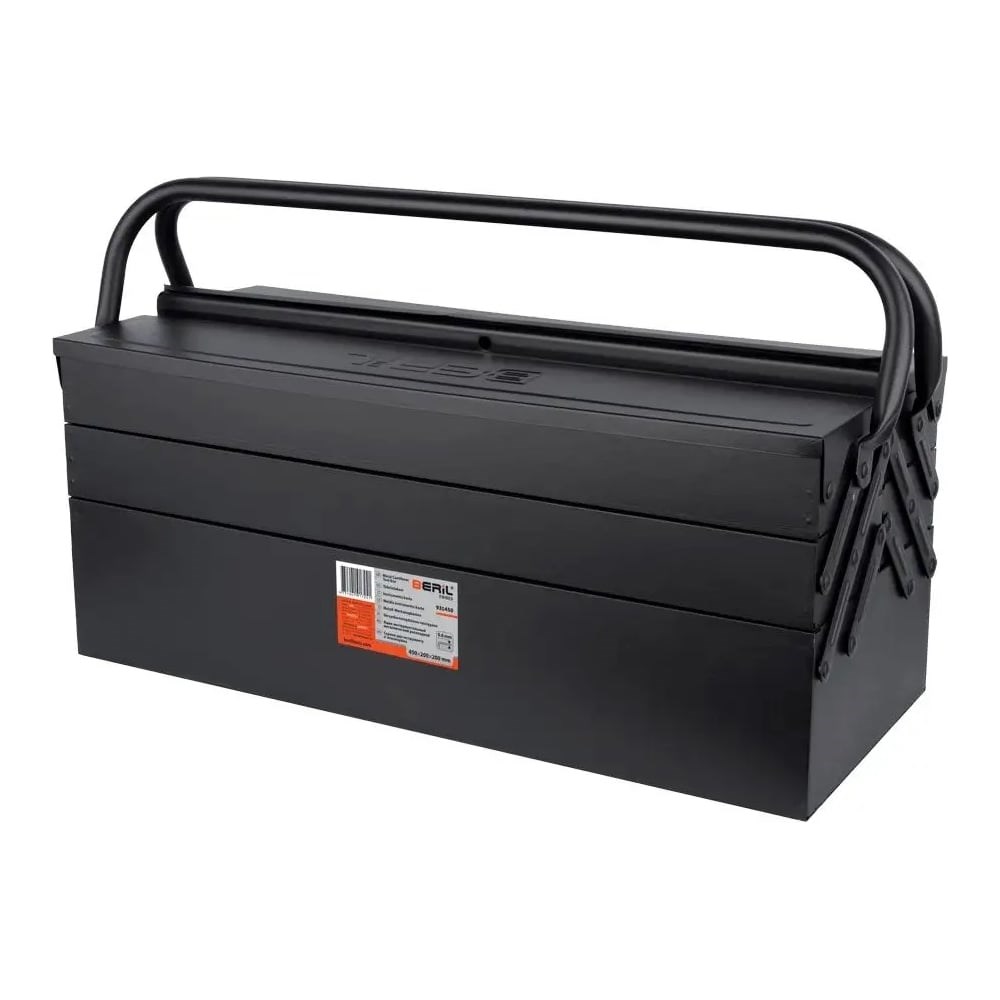 Инструментальный ящик Beril металл, 450 мм, 5 отсеков 215300 12030 предназначен для хранения и транспортировки инструментов, крепежа, метизов и других принадлежностей. Ящик изготовлен из листового стального проката толщиной 0,6 мм методом штамповки, что обеспечивает прочность и долгий срок службы. Изделие имеет пять раздвигающихся отделений для хранения инструмента и элементов крепежа. Ящик снабжён складными ручками для удобной переноски. Защищён от коррозии синтетической ударопрочной эмалью.