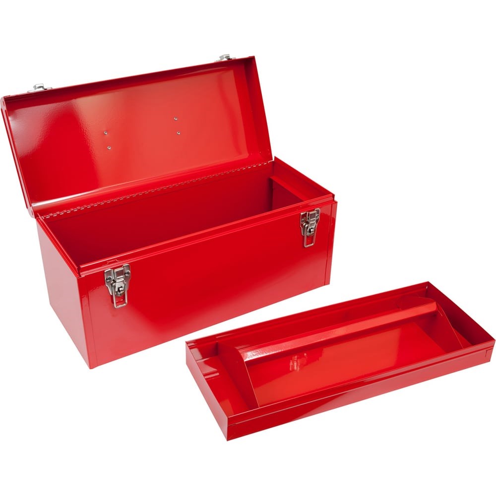 Инструментальный ящик МАСТАК красный 512-01510R предназначен для хранения и транспортировки ручного инструмента. Благодаря тому, что он изготовлен из металла, срок его службы выше чем у аналогичных ящиков из пластика. А порошковое покрытие защищает кейс от повреждений и делает его износостойким.