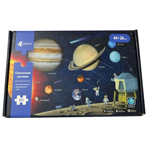 Интерактивная деревянная карта-пазл GLOBEN "Строение солнечной системы", 44х26 см, 80 элементов, PAG5204