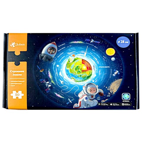 Интерактивная деревянная карта-пазл GLOBEN "Строение Земли", 28 см, 50 элементов, PAG5205