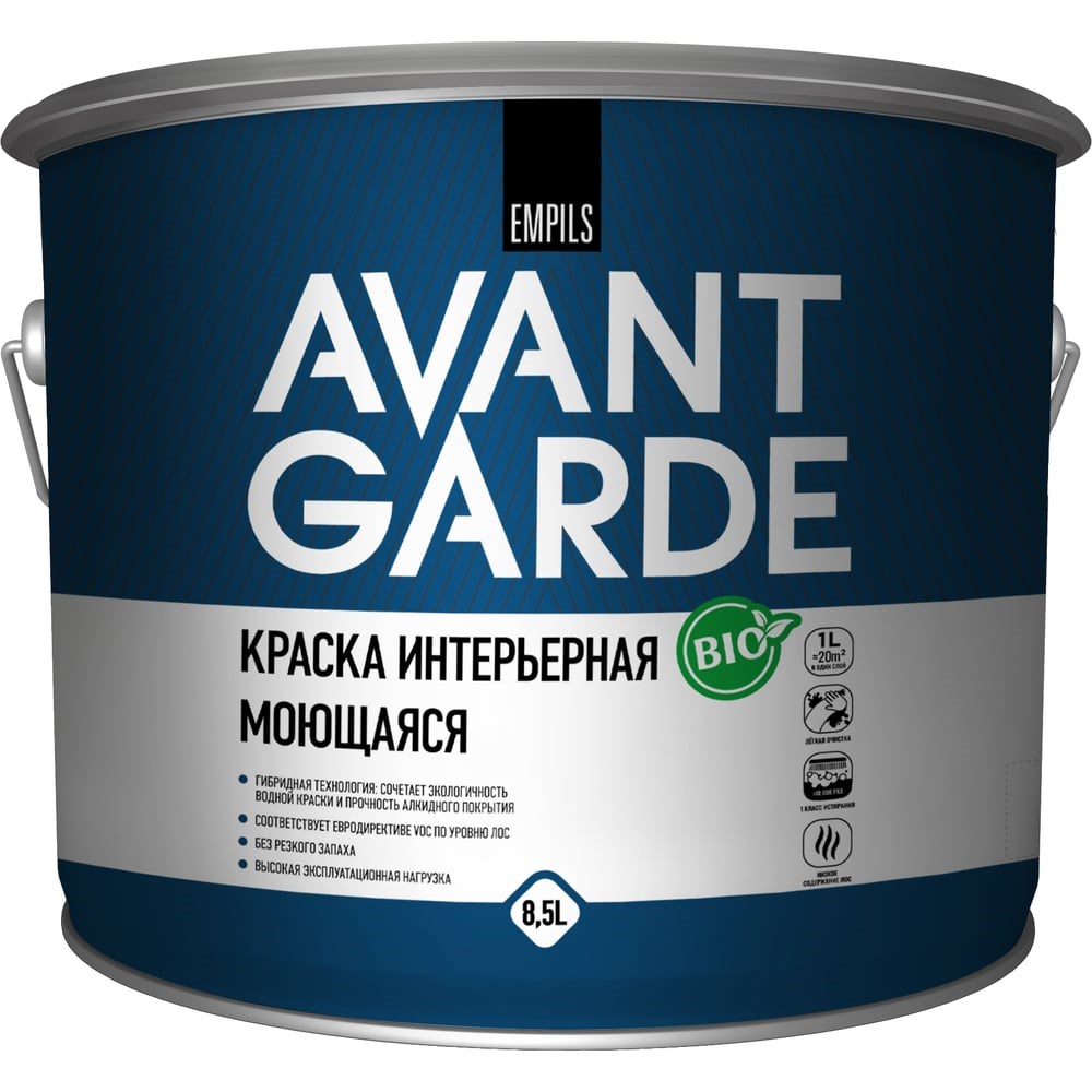 Интерьерная краска Avantgarde моющаяся, база А, матовая, белая, 8.5 л, 11.6 кг 76664 предназначена для использования внутри помещений с усиленной эксплуатационной нагрузкой: детские комнаты, коридоры, офисы, кухни и ванные комнаты, а также лестничные пролеты. Подходит для нанесения на минеральные поверхности (штукатурка, шпатлевка, асбоцемент, ГВЛ, допустимо на ГКЛ, в том числе ранее окрашенными акриловыми и алкидными ЛКМ после их предварительной подготовки). Допустимо наносить на предварительно загрунтованные деревянные поверхности. Краска в соответствии с техническими характеристиками допускается к применению в детских, дошкольных, школьных, лечебно-профилактических учреждениях и предприятиях общественного питания. Выдерживает многократную интенсивную чистку (уборку) с моющими средствами, позволяет легко удалять рисунки мелками, карандашами, следы соков и пищи, жирных рук и другие бытовые загрязнения влажной губкой с моющими средствами без глянцевых затертостей. База А может быть использована самостоятельно в качестве белой краски, а также возможна колеровка в пастельные тона.