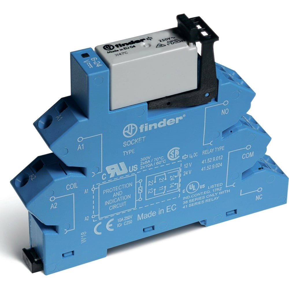 Дополнительные характеристики интерфейсного модуля реле Finder 2 CO конт. 8а, = 24в чувст. пост. тока, пруж. зажимы, 386270240050: Контактная группа - 2 CO (SPDT). Пружинные клеммы. Встроенная схема индикации и защиты катушки. Мгновенное извлечение реле с помощью пластикового зажима. Сертифицировано UL (некоторые комбинации реле / розетка). Установка на 35-мм рейку (EN 60715). Фото товара является условным, актуальные данные указаны в технических характеристиках.