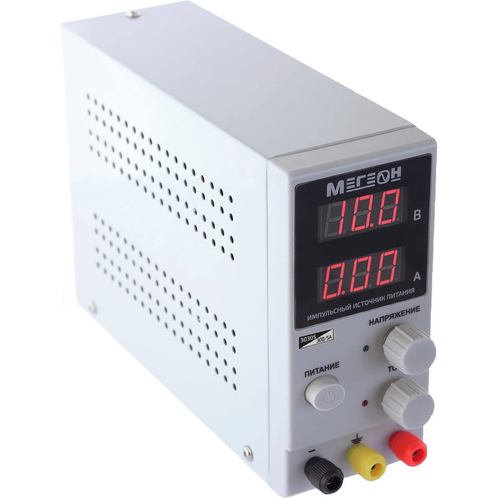 Источник питания МЕГЕОН 30305 00000005834 используется в университетских лабораториях, а также на производственных линиях. На передней панели агрегата располагаются все необходимые элементы управления, с помощью которых пользователь задает выходной ток (0-5А) и напряжение (0-30В) в соответствии с параметрами подключаемой техники.