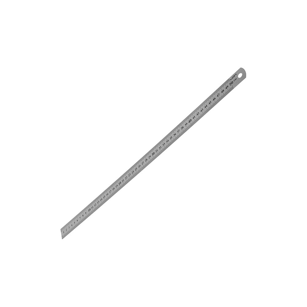 Измерительная металлическая линейка 500 мм 1935505 - измерительный инструмент, который пригодится как в быту, так и в профессиональной деятельности. Особенности Линейка изготовлена из инструментальной стали. Метрическая шкала находится с двух сторон изделия. Цена деления составляет 1 мм.