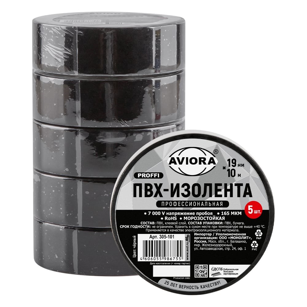 Изоляционная лента AVIORA - это незаменимый расходный материал для изоляции, жгутирования и маркировки проводов. Изолента выполнена из ПВХ (PVC) и имеет клеевой слой из натурального каучука. Материал ПВХ и входящие в его состав добавки придают изоляционной ленте AVIORA высокую эластичность, устойчивость к воздействию внешних факторов и прочность.Изолента черная из ПВХ входит в набор для электрика и подходит для всех видов электромонтажных работ: электроизоляция проводов, сращивание и жгутирование, цветовая маркировка, крепление различных материалов, защита от повреждений.Специальный клеевой слой придает изоленте ПВХ отличную липкость, при этом позволяет ей легко разматываться.В быту важны несколько факторов при использовании ПВХ изоленты:1) Напряжение пробоя (у изолент AVIORA - 7000 V благодаря толщине 165 мкм);2) Липкость (специальный каучуковый клей);3) Эластичность (лента AVIORA растягивается до 250%);Эти три фактора позволят вам качественно изолировать провода, обеспечить электробезопасность и создать прочное соединение, под которое не попадет влага или пыль.Преимущества: соответствует ГОСТ 16214-86; не горит; растяжение до 250%; напряжение пробоя - 7000 V; устойчива к климатическому старению; морозостойкая (до -50 °C); защита от подделки (брендированный слой).Товар сертифицирован.