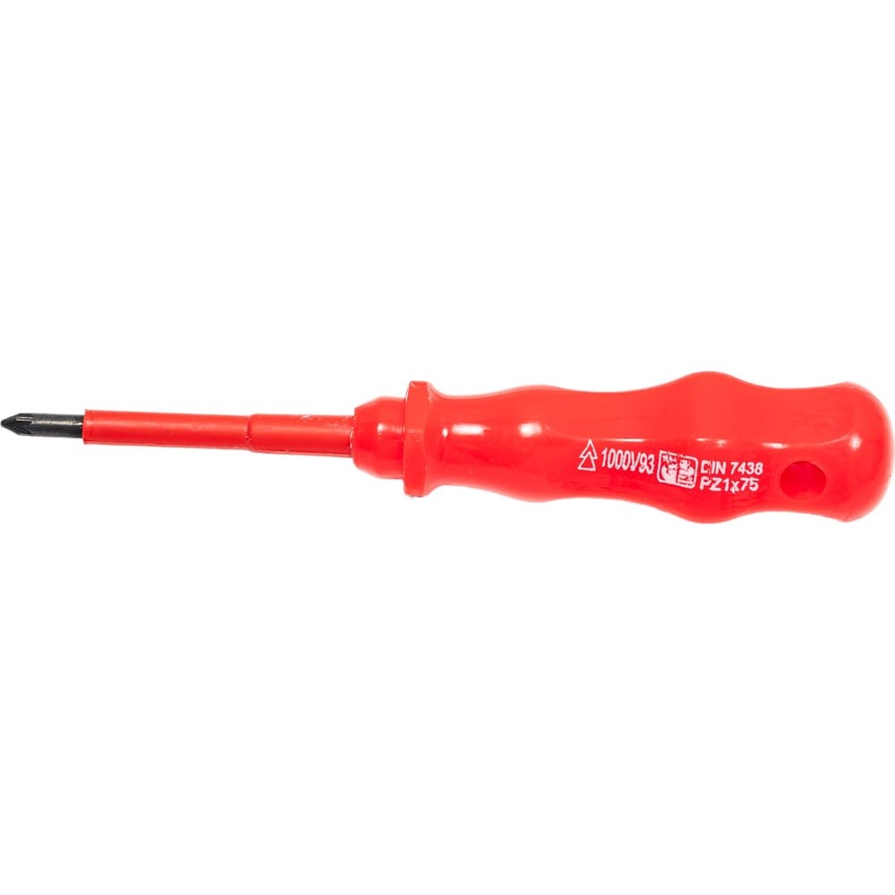 Отвёртка крестовая EKTO изолированная (диэлектрическая) Отвертка изолированная PZ1x75 мм крестовая EKTO Хромванадиевая сталь. предназначена для ввинчивания или отвинчивания крепежных изделий с резьбой, на головке у которых присутствует паз, находящихся под напряжением до 1000 В. Стержень отвертки EKTO длинной 75 мм. изготовлен из хромованадиевой стали имеющий шлиц PZ1(Pozidriv), (крестовая отвертка). Для передачи крутящего момента на рабочую часть отвертки используется рукоятка (ручка) однокомпонентная полипропиленовая, препятствующая проскальзыванию отвертки в руке. Специальная технология ковки обеспечивает максимальную прочность стержня при работе в труднодоступных местах.