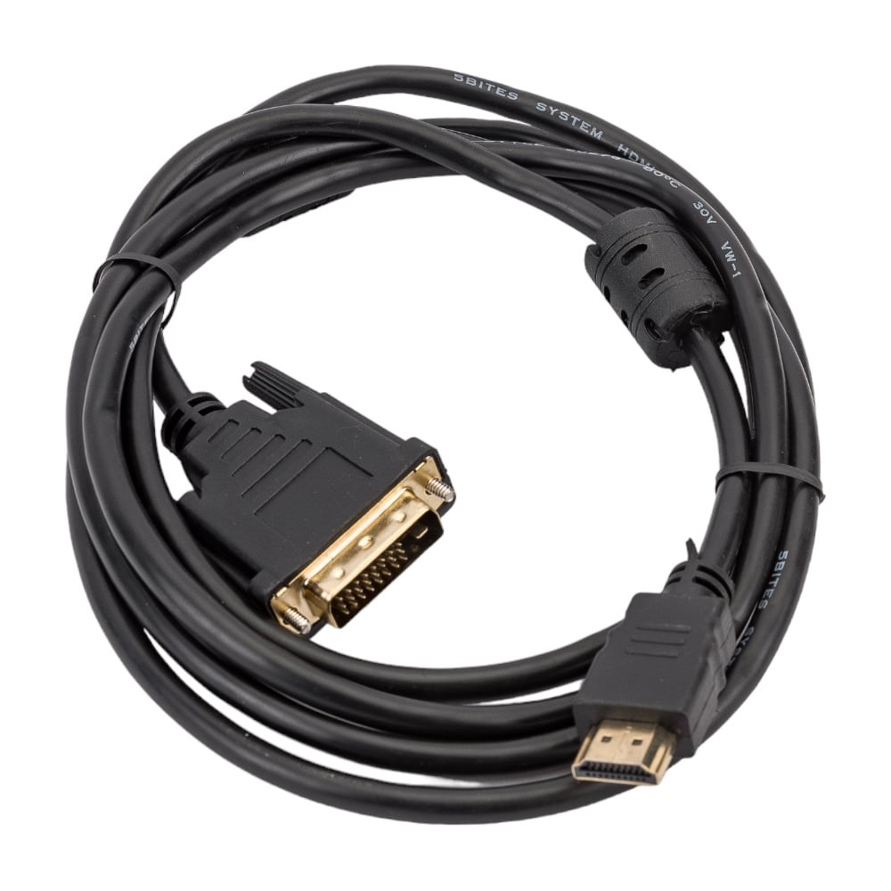Кабель HDMI M - DVI M 24+1 5bites Dual Link ферритовые кольца, позолоченные контакты 2м APC-073-020 предназначен для передачи видео между устройствами, одно из которых имеет HDMI разъём (разъём для подключения HDMI кабеля), а другое — DVI разъём (для подключения DVI кабеля). Например, для подключения компьютеров с DVI-выходом к телевизорам и мониторам с HDMI-входом, и наоборот — игровых приставок, плееров, ноутбуков и других устройств с HDMI-выходом к мониторам с DVI-входом. Дополнительные технические характеристики: Разъемы - HDMI 19M / DVI 25M. Ферритовые кольца - +. Позолоченные контакты - есть. Форма - круглый. Длина (м) - 3.