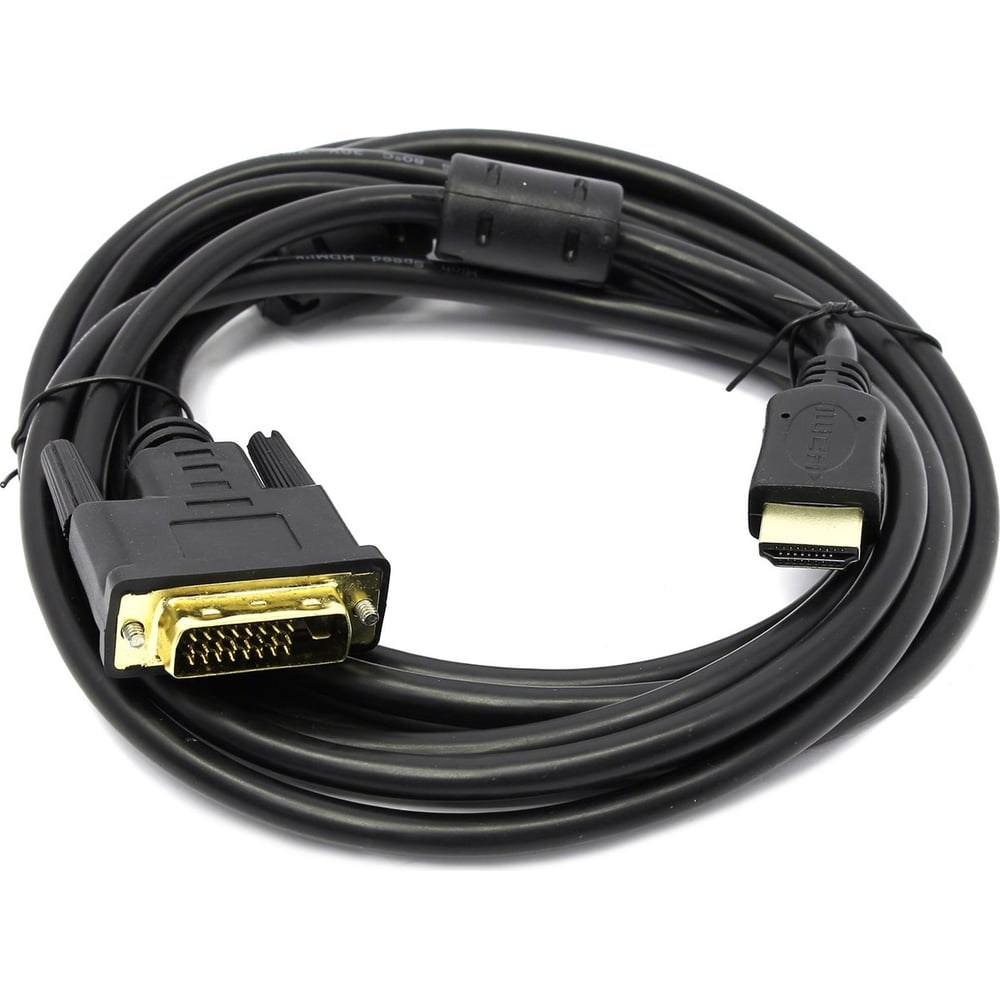 Кабель HDMI M - DVI M 24+1 5bites Dual Link ферритовые кольца позолоченные контакты 3м APC-073-030 предназначен для передачи видео между устройствами, одно из которых имеет HDMI разъём (разъём для подключения HDMI кабеля), а другое — DVI разъём (для подключения DVI кабеля). Например, для подключения компьютеров с DVI-выходом к телевизорам и мониторам с HDMI-входом, и наоборот — игровых приставок, плееров, ноутбуков и других устройств с HDMI-выходом к мониторам с DVI-входом. Дополнительные технические характеристики: Разъемы - HDMI 19M / DVI 25M. Ферритовые кольца - +. Позолоченные контакты - есть. Форма - круглый. Длина (м) - 3.