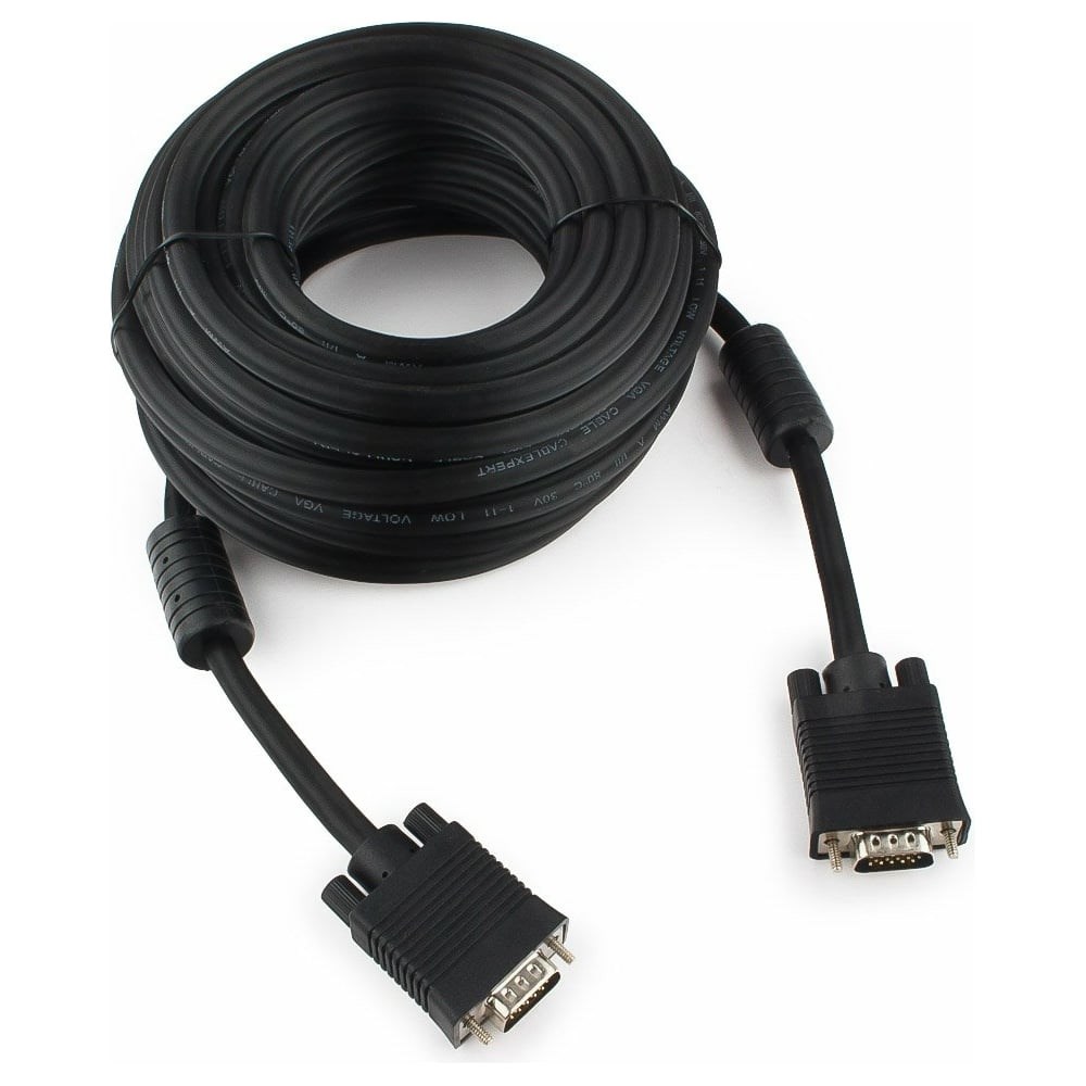 Кабель Cablexpert VGA Premium 10м черный CC-PPVGA-10M-B 15M/15M обладает двойным экранированием (оплетка и фольга) и двумя ферритовыми кольцами. Используется для подключения монитора с интерфейсом VGA к видеоадаптеру с разъемом VGA.