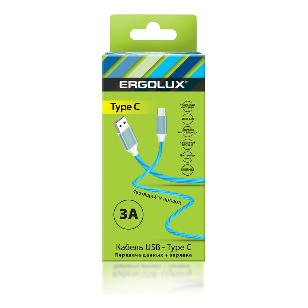 Кабель USB-Type C Ergolux Elx-cdc02-c06 (3а, 1,2м, led (синий), зарядка+передача данных, коробка) 15305