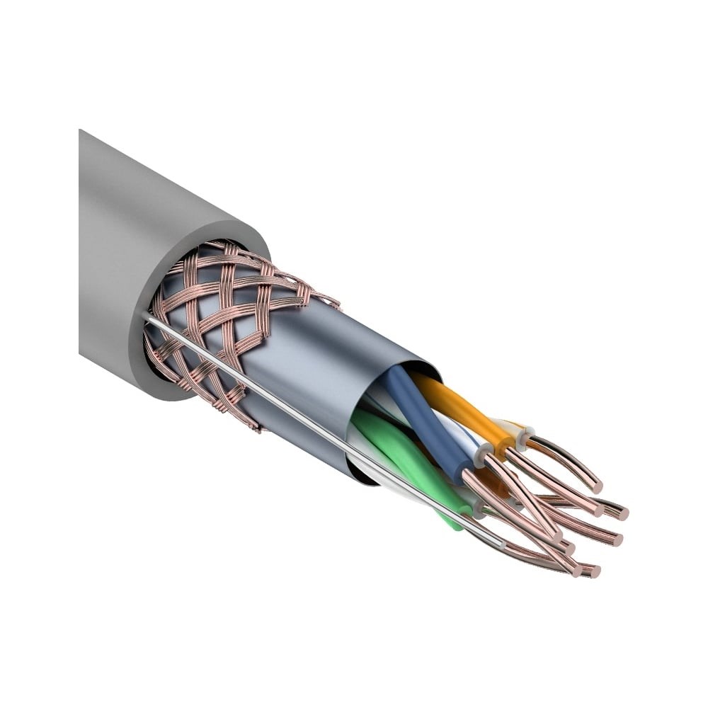 Кабель витая пара серого цвета предназначен для создания локальных сетей, компьютерных сетей, подключения устройств охранной системы, телефонии, интернета, камер видеонаблюдения, систем охраны и контроля доступа и т.д. Применяется для прокладки внутри помещений. Отличается жесткостью. Относится к категории 5е.Электромагнитное излучение, исходящее от электроприборов и силовых кабелей, не влияет на качество сигнала благодаря двойному экранированию из алюминиевой фольги и медной сетки.Центральный проводник кабеля изготовлен из высокоочищенной бескислородной меди и покрыт изоляцией HDPE. Внешняя изоляция выполнена из ПВХ, толщиной 0,5 мм.За счет усиления взаимодействия между каждой парой проводников, пользователю доступен высокий уровень эффективности передачи данных.