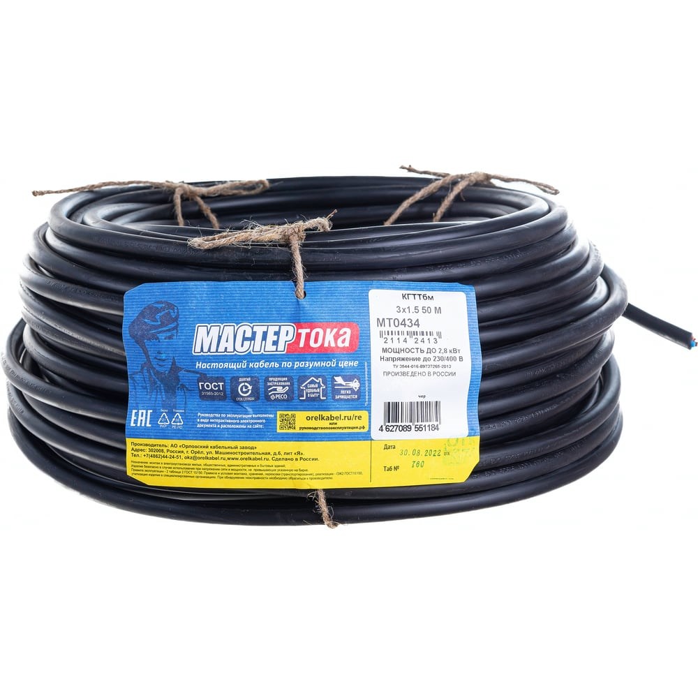 Кабель Мастер Тока КГТТбм 3х1.5 черный 50м МТ0434