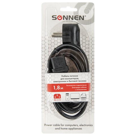 Кабель питания SONNEN предназначен для подключения компьютеров, электроприборов и бытовой техники.