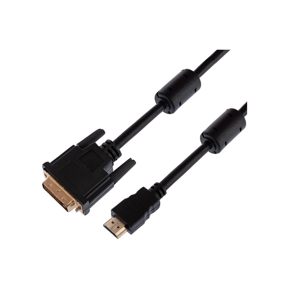 Кабель REXANT HDMI - DVI-D с фильтрами 1,5 м Gold 17-6303 предназначен для передачи цифрового видеоизображения высокого разрешения и многоканального аудиосигнала. Используется для совместной работы устройств, имеющих разъемы DVI-D и HDMI: проекторы, телевизионные аппараты, компьютеры и ноутбуки, мультимедийные проигрыватели и другие видеоустройства. С одной стороны располагается штекер разъема HDMI (High-Definition Multimedia Interface - интерфейс для мультимедиа высокой четкости), а с другой - штекер разъема DVI (Digital Visual Interface, сокр. DVI (англ. цифровой видеоинтерфейс)). Отличительной особенностью является наличие ферритовых фильтров, которые увеличивают индуктивность проходящего через него участка провода в несколько сотен раз, это обеспечивает подавление помех высокой частоты.