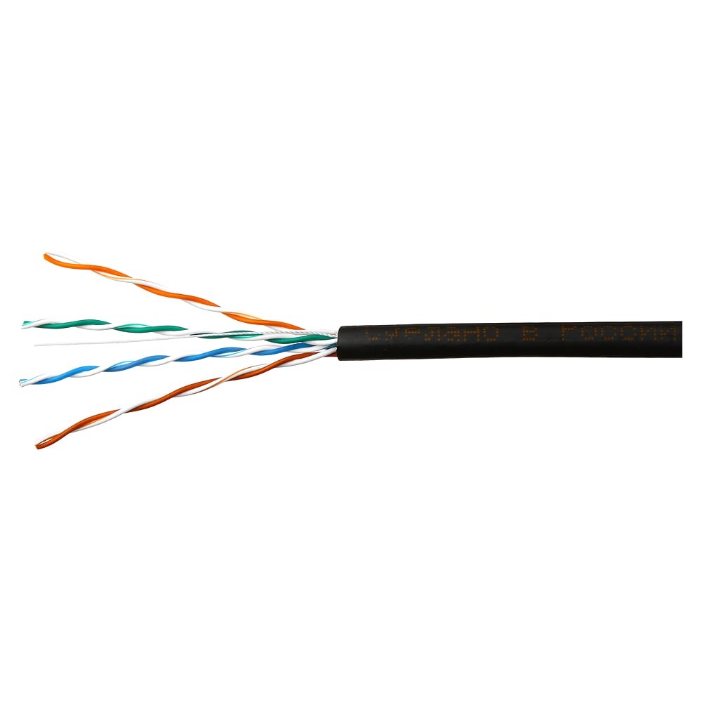 Кабель SkyNet Prem UTPoutdoor 4x2x051 трос медь FLUKETEST категории 5e одножильный 100м box черный CSP-UTP-4-CU-OUTR/100 предназначен для наружной прокладки. Применяется в локальных сетях, входит в состав системы телекоммуникаций. Так же подходит для выполнения работ по построению центров обработки данных и структурированных кабельных сетей.Область применения серия Premium + Steel rope: Самонесущий кабель применяется для наружной прокладки вне помещений. Особенность - оболочка из светостабилизированного морозостойкого полиэтилена и наличие силового элемента - стального троса, позволяющего достичь повышенного растягивающего усилия.Элементы конструкции: 1. Токопроводящая жила – однопроволочная, мягкая медная проволока диаметром 24AWG (0,51мм) 2. Изоляция проводника – полиэтилен 3. Разрывная нить – капрон 4. Внешняя оболочка – светостабилизированный морозостойкий полиэтилен 5. Силовой элемент – стольной трос, диаметр 1,5 ммТехнические характеристики: – температура эксплуатации от -40°С до +50°С Электрическое сопротивление цепи (двух последовательно соединенных токопроводящих жил рабочей пары) постоянному току при температуре 20°С - не более 18,1 Ом/100 м Эксплуатируется на частотах до 100 Мгц Минимальный радиус изгиба – 8 наружных диаметров кабеляДиаметр изоляции одной жилы: 0,94-0,98мм Внешний диаметр кабеля: 5.8 +-0,2мм