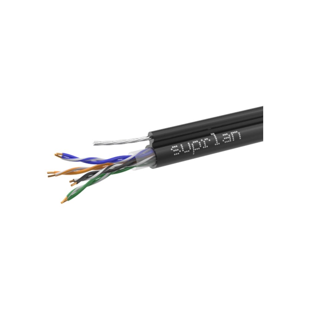 Кабель SUPRLAN Premium UTP Cat.5e 4x2x0,51 Cu PE Outdoor T-FG8 (трос) 305м 01-0308-1 — LAN-кабель высшего класса, отличающийся полным соответствием требованиям категории 5е по стандартам ISO/IEC11801, EN 50173, TIA/EIA568 и ГОСТ 54429-2011. Данный кабель предназначен для наружной прокладки методом подвеса.