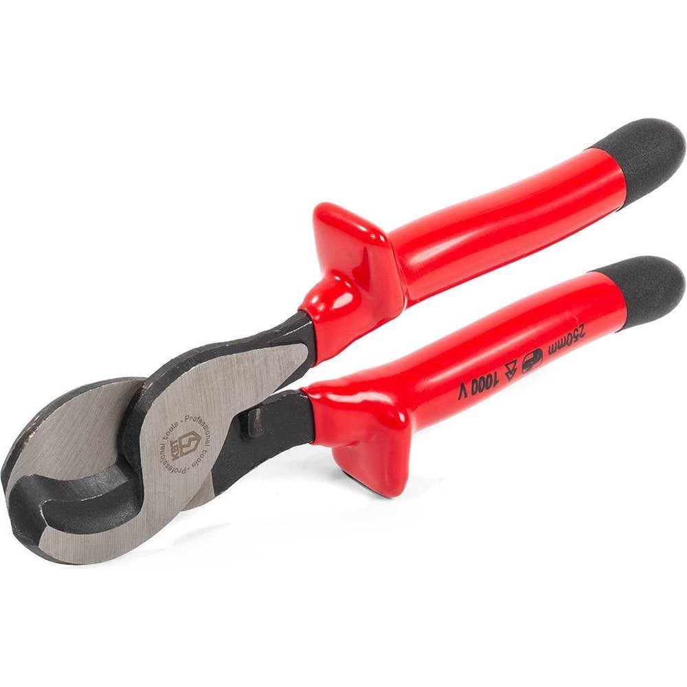 Кабельные ножницы КВТ НКи-16 57365 используются для выполнения электромонтажных работ с проводами в диаметре до 16 мм. Инструмент обеспечивает защиту от поражения током, способен выдерживать напряжение до 1000 В. Ножницы удобно располагаются в руке в процессе резки, специальные упоры для ладони препятствуют проскальзыванию.