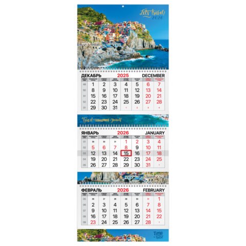Календарь квартальный 2026 г., 3 блока, 3 гребня, бегунок, мелованная бумага, BRAUBERG EXTRA, "Бухта", 116818