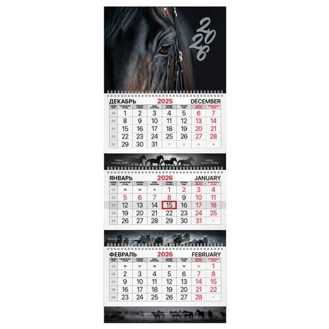 Календарь квартальный 2026 г., 3 блока, 3 гребня, бегунок, мелованная бумага, BRAUBERG EXTRA, "Символ года", 116812