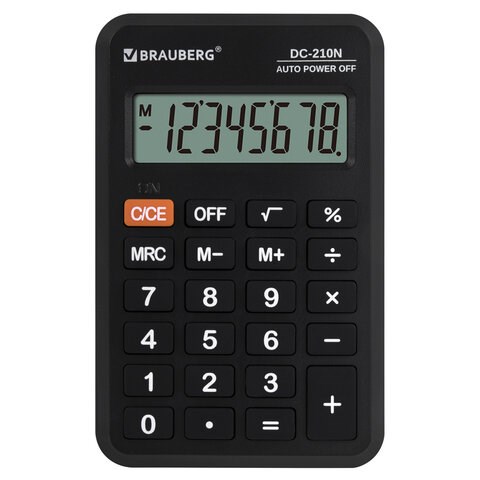 Калькулятор карманный BRAUBERG DC-210N (63х98 мм), 8 разрядов, черный, 272953