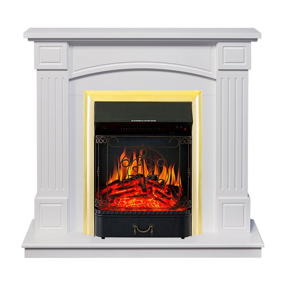 Классическая модель, выполнена из дерева, украшена резным декором в античном стиле. По бокам оформлена изящными колоннами, придающими ей изысканности. В качестве декоративного топлива в очаге используются поленья с эффектом мерцания. Для большей реалистичности в дополнение к технологиям визуализации горящего огня, в очаг встроена система звуковой имитации потрескивания пылающих дров.
