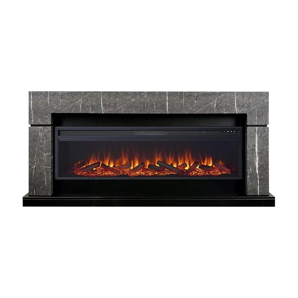 Деревянный портал, строгий, лаконичный дизайн в стиле хай-тек. Минимум декора и строгие, прямые линии придают порталу завершенный, изысканный вид. Украшен псевдоколоннами, иллюзия которых создается за счет визуального разделения боковых частей портала. Работа пламени в камине сопровождается звуками потрескивающих дров, что придает картинке большую реалистичность.