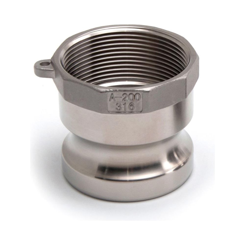 А: тип камлока - соединительный штуцер с внутренней резьбой и ответной частью "папа" 200: условное обозначение диаметра камлока 2": внутренний диаметр трубы (условный проход трубы), обозначение размера резьбы в дюймах. Соответствует 50 мм. Вид резьбы: дюймовая трубная цилиндрическая G (BSPP) Материал корпуса: нержавеющая сталь AISI 316 - это сталь AISI 304, улучшенная путём добавления молибдена и никеля. Благодаря молибдену данная сталь немагнитна, особенно устойчива к коррозии, высоким температурам и агрессивным средам (серная, фосфорная, борная, муравьиная, уксусная, щавелевая, молочная и прочие кислоты) Номинальное рабочее давление: 20 бар Рабочая температура камлока: от -65°C до +260°C
