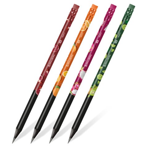 Карандаш чернографитный с принтом BRAUBERG "JUICY FRUIT", 1 шт., HB, с ластиком, корпус ассорти, 182017
