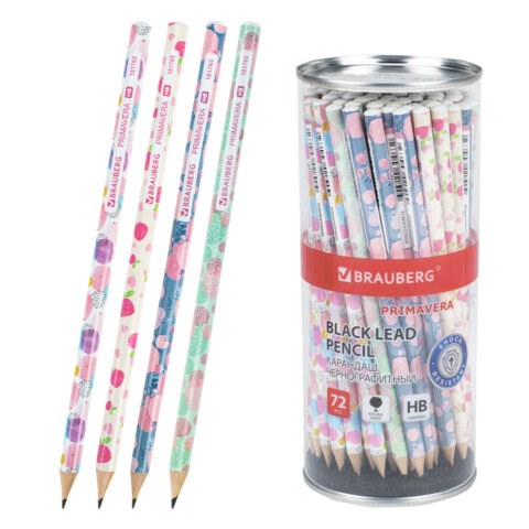Карандаш чернографитный BRAUBERG "PRIMAVERA", 1 шт., HB, корпус ассорти, 181765