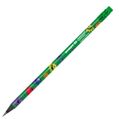Каждый карандаш имеет индивидуальный штрих-код. Легко и ровно затачивается, максимально устойчив к повреждениям. Изготовлен из пластика высокого качества. Ударопрочный грифель диаметром 2.0 мм не царапает бумагу и не крошится. Карандаш длиной 190 мм обладает универсальной степенью твердости – HB. Имеет круглый корпус с яркой печатью, оснащен цветным ластиком. Каждый карандаш украшен ярким принтом с забавными монстриками, который поднимет настроение