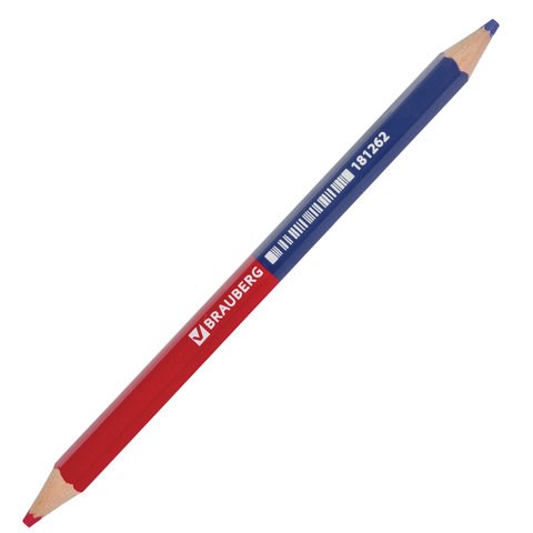 Карандаш двухцветный КРАСНО-СИНИЙ, BRAUBERG, УТОЛЩЕННЫЙ, 1 шт., шестигранный, грифель 4 мм, натуральное дерево, 181262