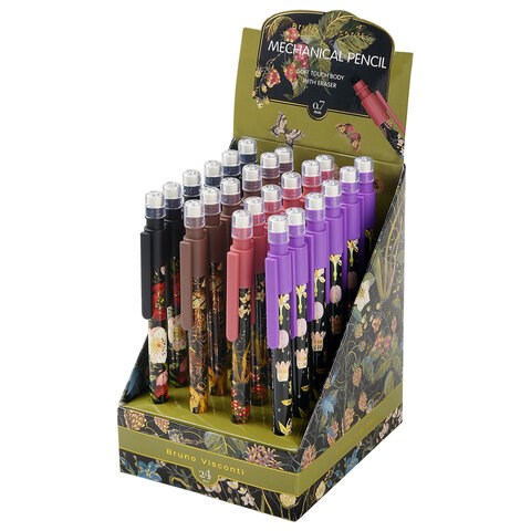 Карандаш механический 0,7 мм, BRUNO VISCONTI "Flora.Black night", корпус ассорти, ластик, 21-0077/01